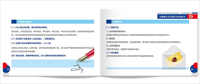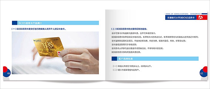 為交通銀行推廣太平洋BOSS信用卡設(shè)計(jì)宣傳冊頁。