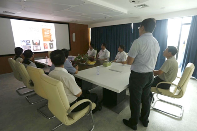 2014年8月30日人社部就業(yè)促進司副司長 尹建堃 一行到盛天彩調(diào)研指導(dǎo)工作